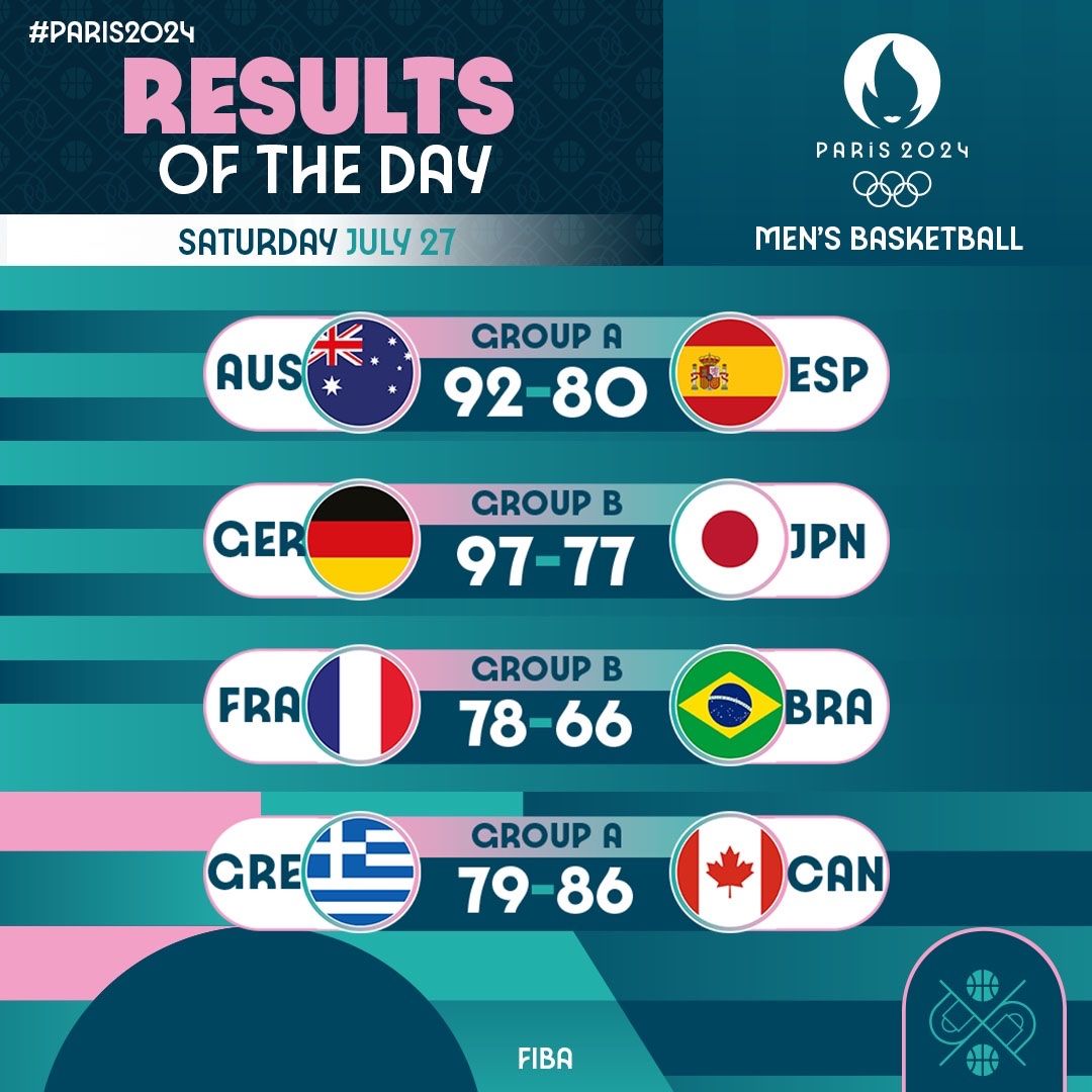 🌟奥运男篮小组赛首日赛果:澳大利亚、德国、法国、加拿大开门红