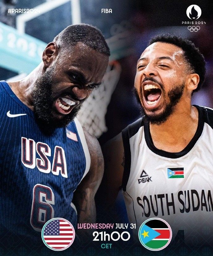 FIBA官方晒出预热海报并配文:“美国VS南苏丹!你们期待已久的对决终于到来了!”