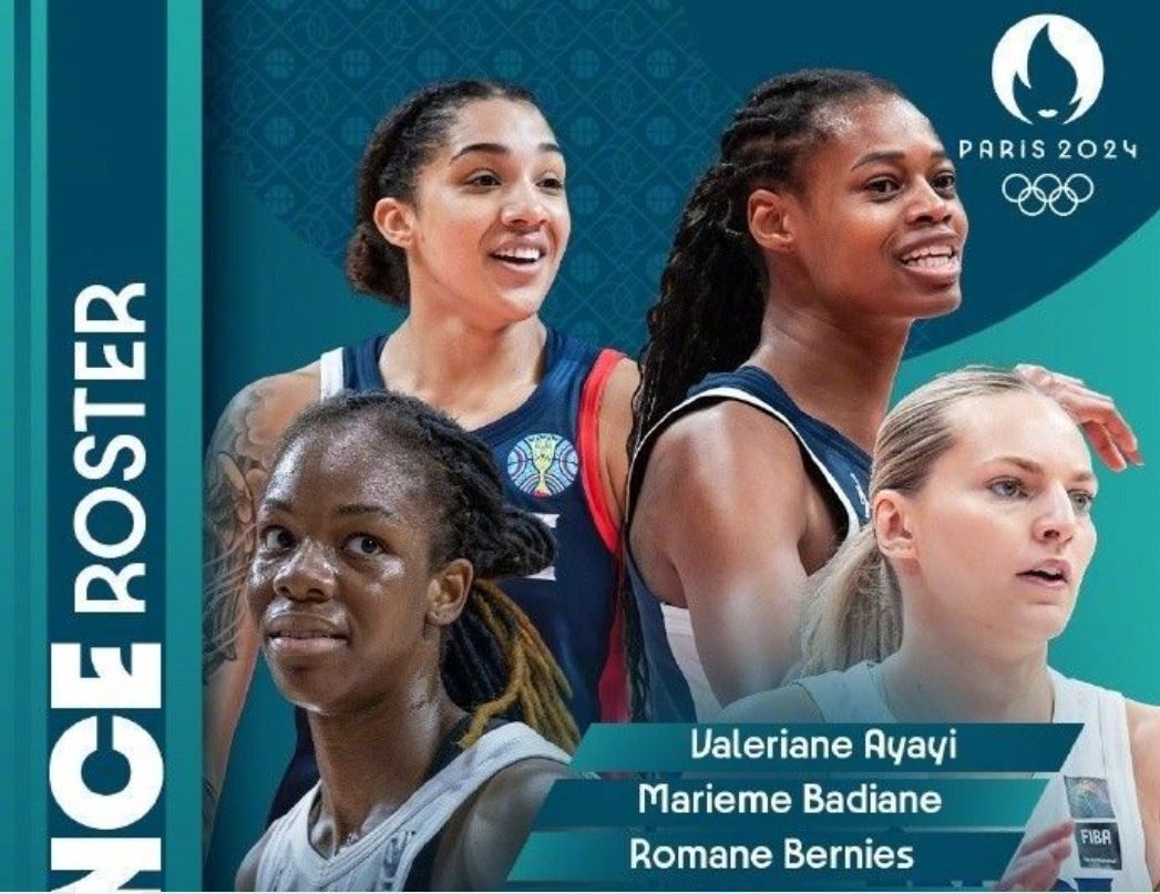 法国女篮奥运会参赛名单:瓦莱里安-阿亚伊、玛丽姆-巴迪亚内、罗曼-伯尼斯、亚历克西亚-切里、马琳-福图、马琳-约翰内斯、莱拉-拉坎、多米尼克-马隆加、莎拉-米歇尔-伯里、伊里亚娜-鲁珀特、珍内尔-萨兰、加比-威廉姆斯