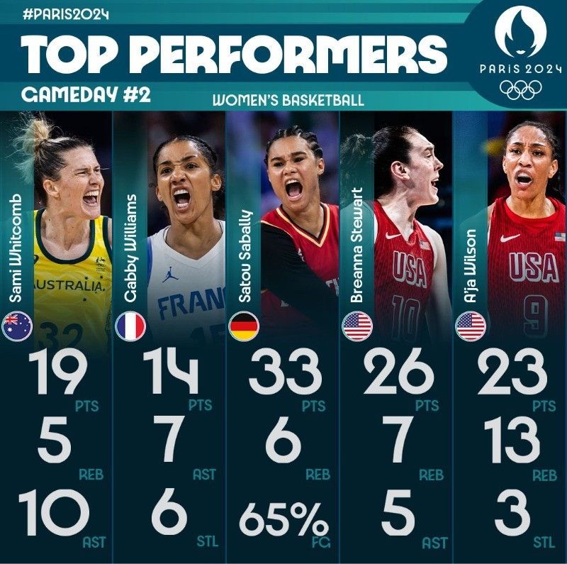 @FIBA官方发文评选奥运女篮第二轮高光表现: