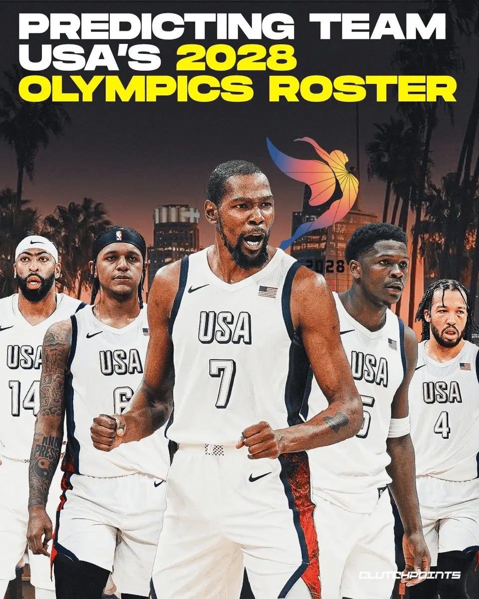 昨日,美媒BF预测了一份2028洛杉矶奥运会美国男篮的参赛名单,没有杜兰特,也没有浓眉。
