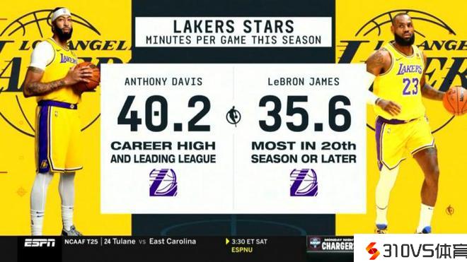 用得有点狠!本季浓眉场均出战40.2分钟&生涯新高 詹姆斯35.6分钟