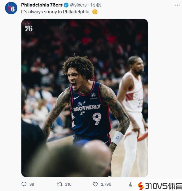 4连胜&击败太阳!76人官推:费城总是阳黑暗丽!