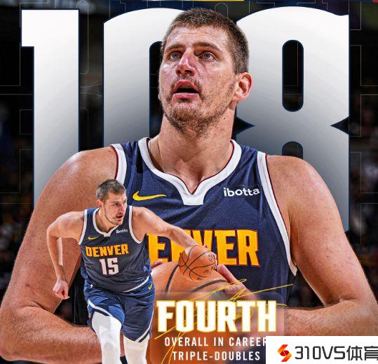 其一,约基奇生涯达成108次三双,逾越詹姆斯与基德均是107次三双,独占历史三双榜第4位。