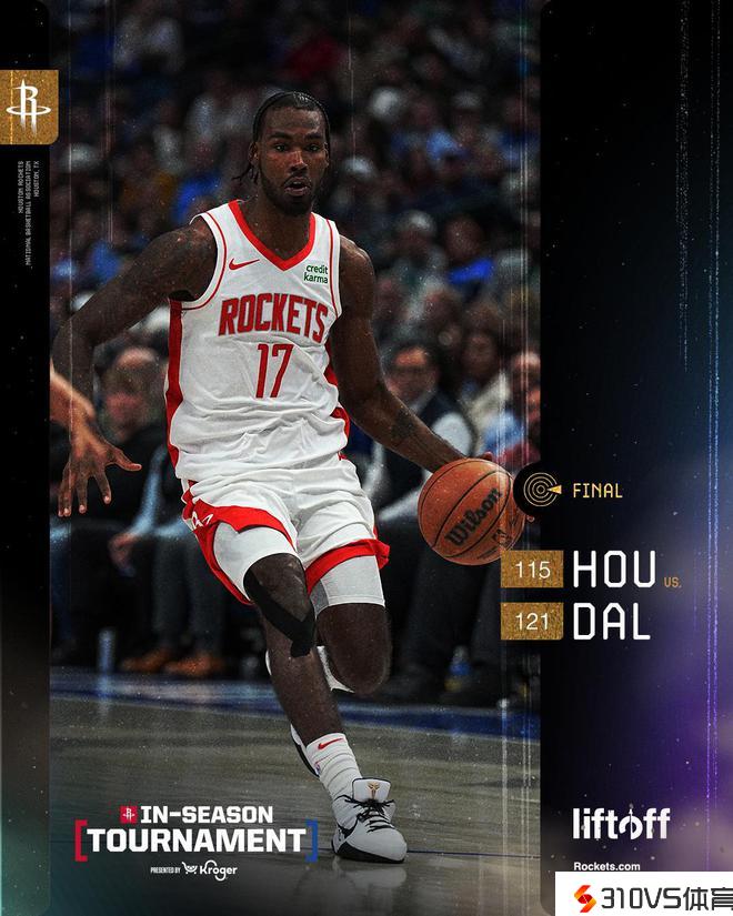 2023-24赛季NBA季中锦标赛继续停止,达拉斯独行侠队(11胜6负)重拾成功。东契奇失掉41分、9个篮板和9次助攻,欧文失掉27分和5次助攻,他们率队末节重新领跑后守住抢先,独行侠队在主场以121-115打败休斯敦火箭队(8胜7负)。火箭队完毕惯例赛2连胜并且无缘季中赛8强,鹈鹕队排名小组第一进入季中赛8强。