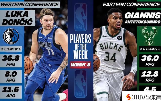 NBA官宣周最佳:字母哥东契奇场均36+中选 浓眉小卡等9人获提名