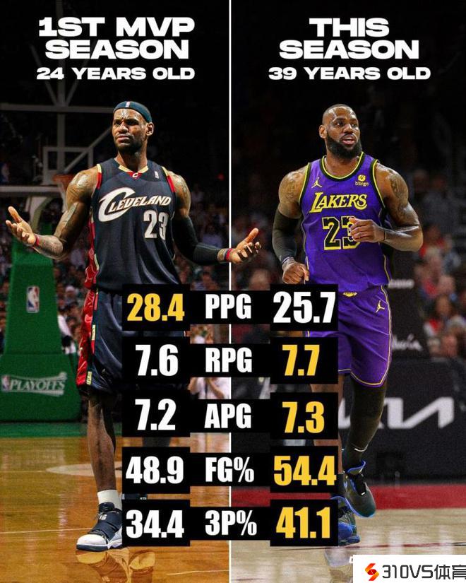 逆生长!詹姆斯本赛季数据对比首个MVP赛季:除得格外均更高