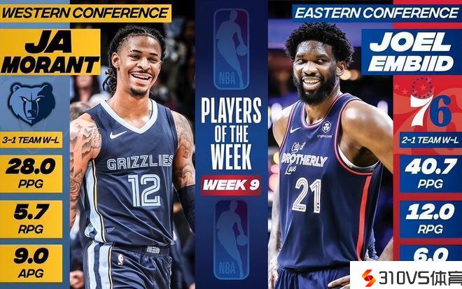 NBA官宣周最佳球员:恩比德莫兰特中选 詹姆斯库里等13人获提名