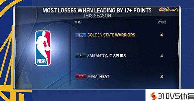 胆小鬼本赛季四次抢先17分以上被逆转 与马刺并列第一
