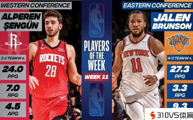 NBA官宣周最佳:申京初次中选布伦森得奖 浓眉欧文等18人获提名