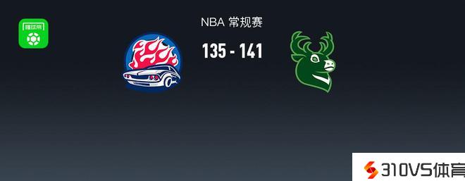 第四节活塞伯克斯拿下12分,雄鹿字母哥拿下13分,最终活塞135-141不敌雄鹿
