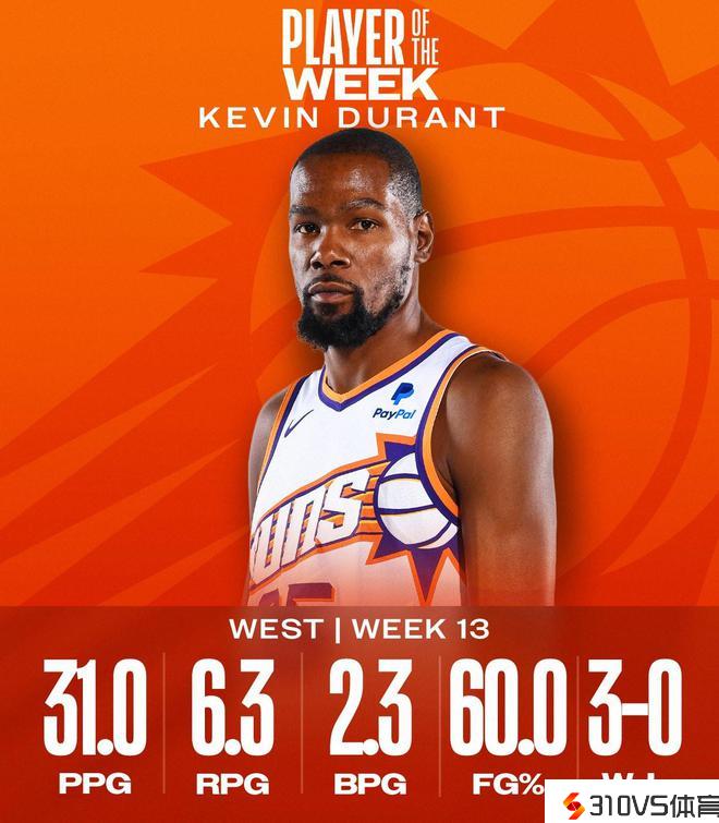 NBA官方发布第13周周最佳:杜兰特、恩比德