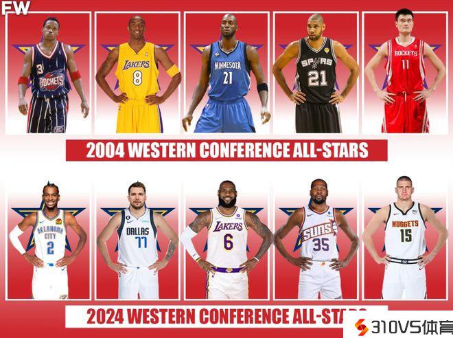 西部全明星2004vs2024谁赢?3-2!姚明不敌约基奇,科比荣膺MVP