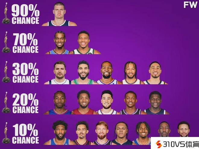 由于场均35.3分、11.3个篮板和5.7次助攻的恩比德受伤,他将无缘这个赛季的MVP和得分评选。为此,美媒《Fadeaway World》将2023-24赛季有能够中选MVP的球员,依照他们获奖的概率划分红五个等级,让我们来看看哪些球员取得MVP的概率被高估或许低估了。