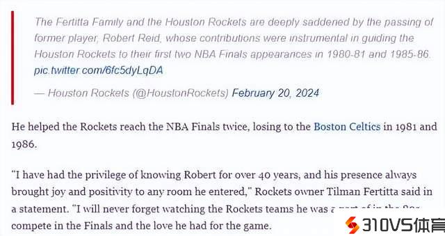 又一火箭名宿离世,球队官方发推致哀,魔术师对其赞不绝口