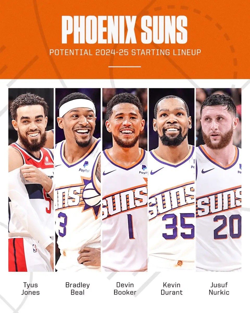 ESPN晒出了下赛季太阳队的预测首发: