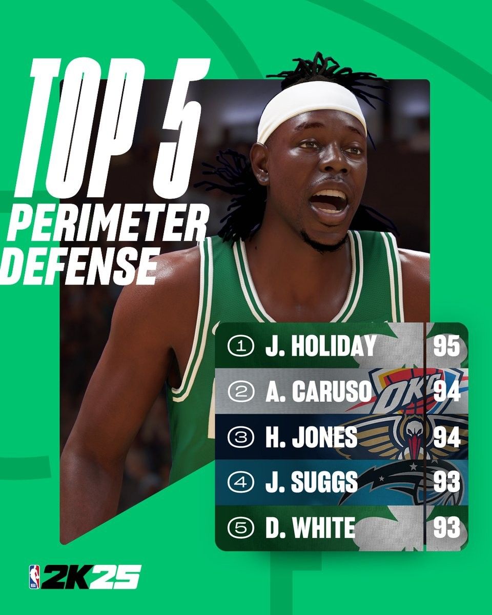 👀NBA 2K25外线防守能力值:霍勒迪95第一 卡鲁索、琼斯94 萨格斯、怀特93