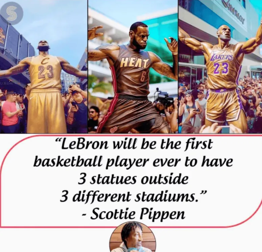 该媒体转发皮蓬此前关于詹姆斯会在3座球馆拥有属于自己的雕像,并表示这很可能是事实。