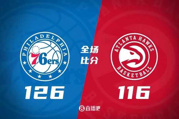 比赛上来,双方就展开对攻拉锯战,恩比德打满首节有突有投得分上双,但特雷-杨晃倒梅尔顿后扔进三分,老鹰全民皆兵给出回应,豪斯上来连续得分助队首节领先6分,次节在特雷-杨的串联下老鹰多点开花,哈里斯和马克西也找回状态连续取分回应半场老鹰追到差1分。下半场,双方继续对攻,恩比德手感火热再次扛起球队进攻,而老鹰则是依靠替补角色球员的发挥还能回应,三节76人领先7分,末节76人再次发力,哈里斯里突外投取分,76人顺势拉开双位数领先,老鹰接连三分追分,无奈哈里斯总能站出来回应,最终76人126-116力克老鹰。