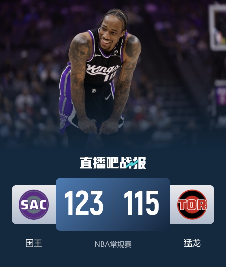 🏀国王力克猛龙结束4连败 德罗赞28分 阿丘瓦28+19