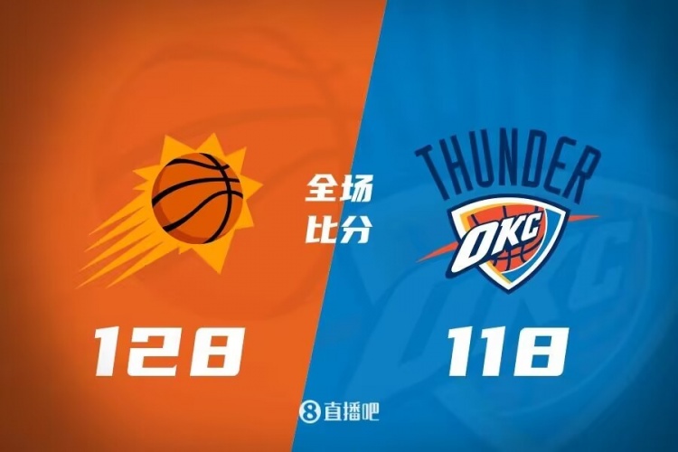 此役一上来太阳状态稍显慢热,雷霆开局9-2率先占优,太阳及时复苏回敬12-1小高潮,末段双方你来我往陷入僵持,首节结束时两队战成27平,次节回来,杜兰特和布克轮番冲击,太阳延续火力单节狂轰42分,雷霆未能及时回应,半场战罢,太阳确立14分优势。下半场回来,亚历山大率队缩小分差,但太阳总能给予回应,两队分差始终保持在10分上下,三节结束后太阳继续领先9分,末节上来,雷霆继续紧咬比分,但艾顿内线接连打进,杜兰特连投带罚不断砍分,保罗和沙梅特外线续上火力,雷霆逆转无望,最终太阳128-118力克对手。