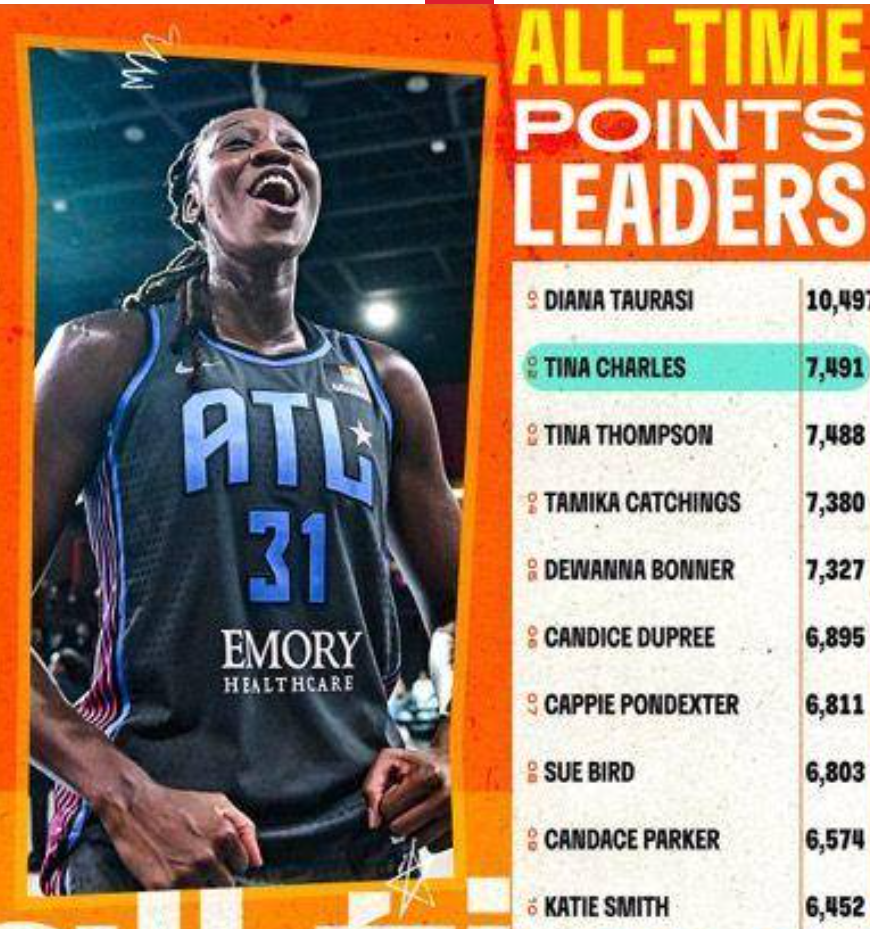 这场比赛查尔斯发挥依然不错,进攻手感不佳的情况下,12中4拿到12分,可抢下了17个篮板。此外,加上本场比赛的12分,查尔斯升至WNBA历史得分榜第二,仅次于水星的陶乐西,后者也是送上了拥抱,表达了祝贺。