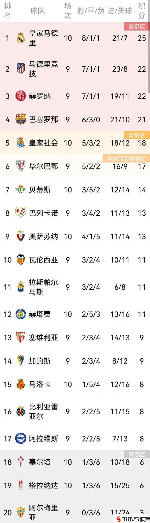西甲积分榜:皇马3分领跑,马竞少赛一场居次席,塞维第十三