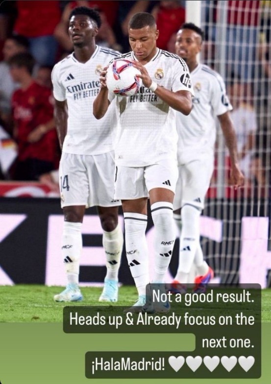 北京时间8月19日讯,在今天凌晨结束的西甲首轮比赛中,皇马客场1-1战平马略卡未能收获开门红,姆巴佩本场比赛未能取得进球。赛后,姆巴佩在社媒发文表示这不是满意的结果。
