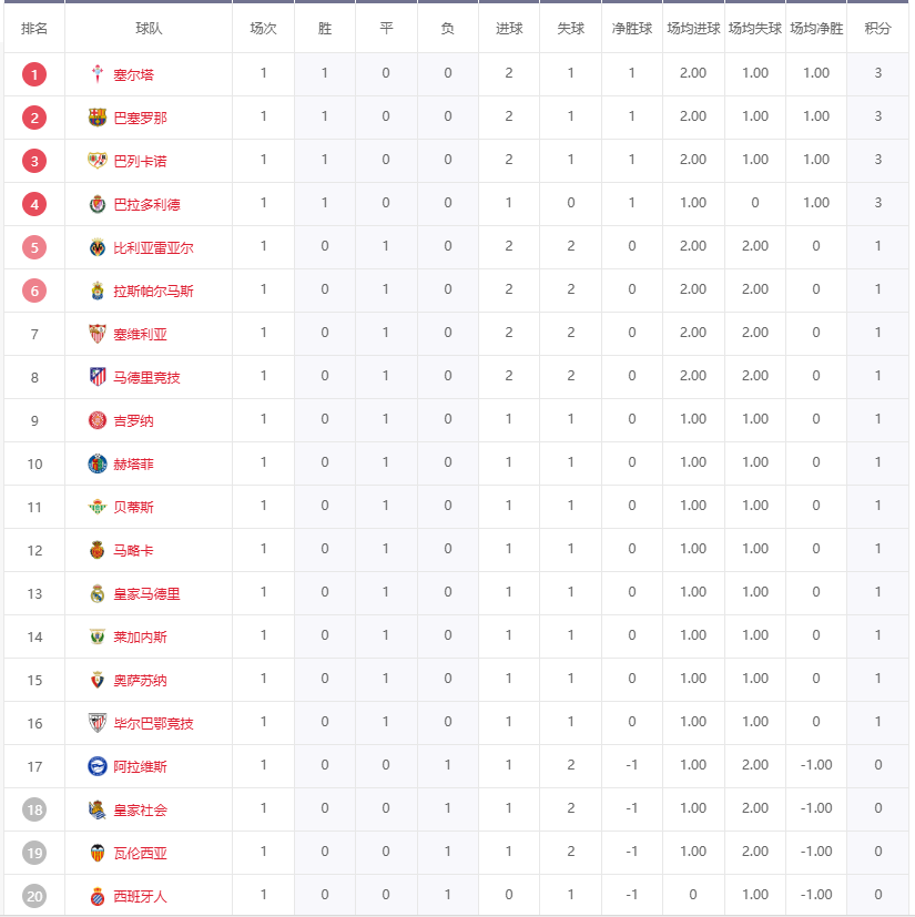 随着本场比赛的结束,2024-25赛季西甲联赛首轮已经战罢,从积分榜上可以发现联赛首轮中只有四支球队取得了开门红,分别是:塞尔塔、巴塞罗那、巴列卡诺和巴拉多利德。除去这四支球队战胜的各自对手外,其他球队全部取得了平局。而这期间,可以算得上是冷门的则是皇马客场1-1战平马略卡,坐拥姆巴佩、维尼修斯、贝林厄姆等一众好手的皇马未能在客场取得首胜着实让人意外,更为受伤的则是门迪吃到红牌被直接罚出场外。这也就意味着皇马不得不在第二轮中联赛中就要调整后防线。