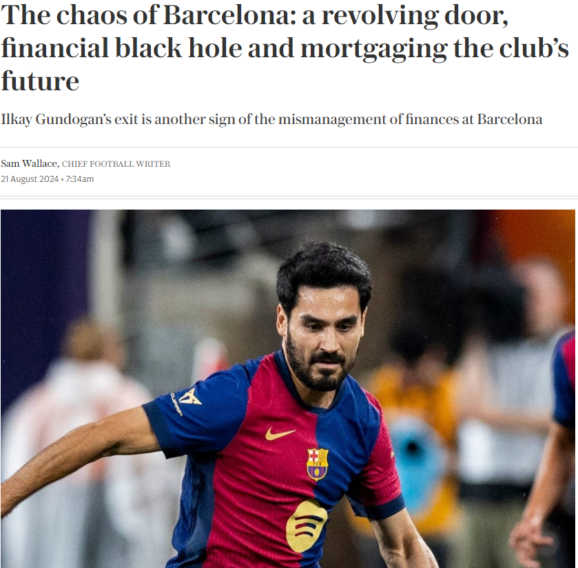 在京多安被巴萨要求离队的消息传出后,英国媒体也披露了巴萨如今的窘境,混乱的财务管理,负债30亿欧元,甚至未来俱乐部的收益都被抵押出去,是巴萨如此窘迫的原因。