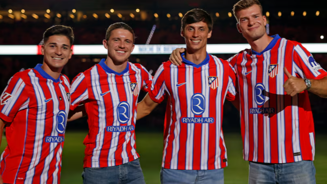 在亮相仪式上还有乐队进行演奏,预计马竞夏窗已经完成全部签约,男子一线队共引进四名球员:阿尔瓦雷斯、加拉格尔、勒诺尔芒、索尔洛特。