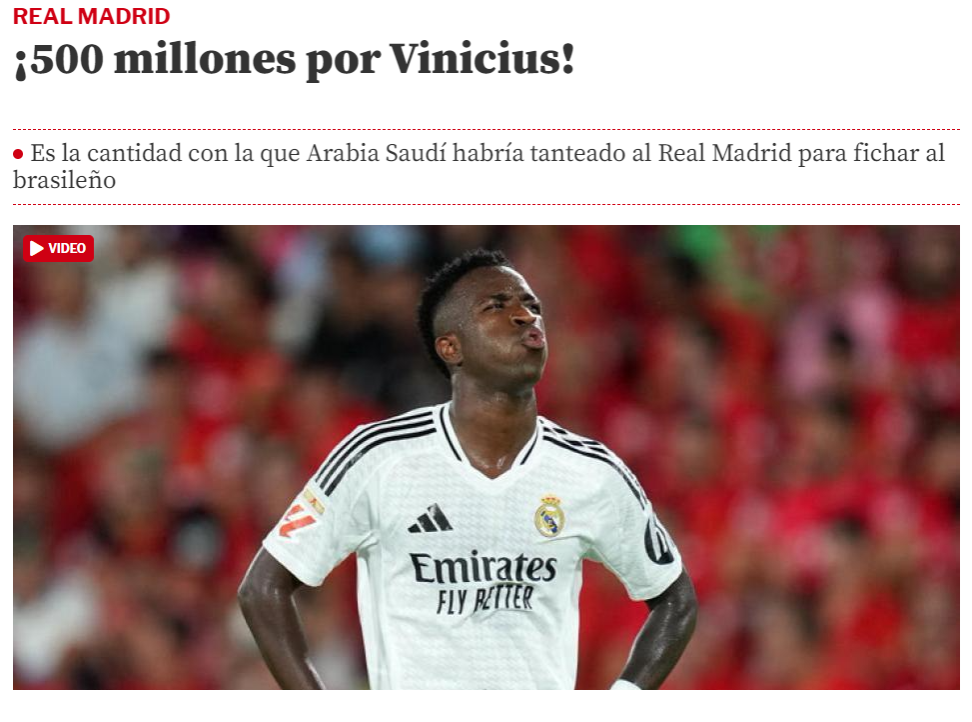 壕无人性!西媒:沙特球队曾5亿欧元报价维尼修斯 皇马仍不为所动