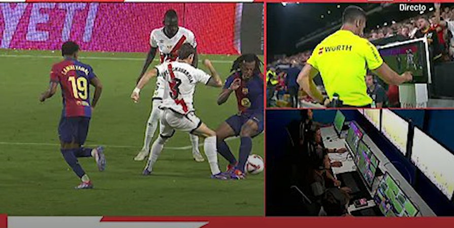 那是比赛第72分钟,亚马尔射门被扑出,莱万小角度补射入网。裁判初始认为进球有效,但是视频助理专员若奥-菲格罗亚-巴斯克斯告知主裁判索托-格拉多:“我需要提醒你去看一看视频回放,因为过程中有一个犯规,你可以看一看这次进攻发起的时刻,由你来评估这次踩踏是否足够重要”。