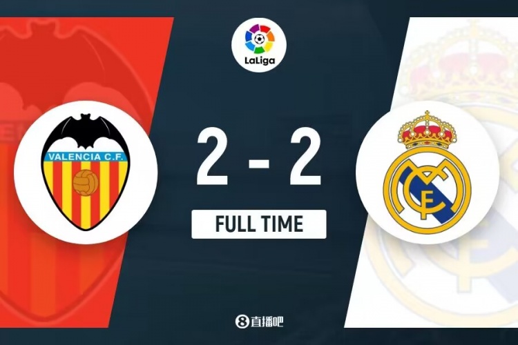 下半场伤停补时7分钟,全场比赛结束,最终皇马2-2瓦伦西亚。
