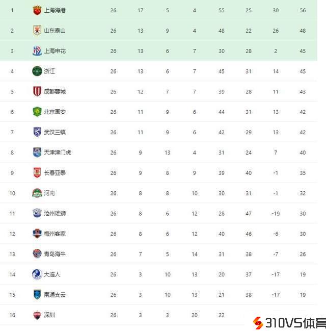中超积分榜:上港铁定夺冠,海牛曾经保级成功,联赛第二还有悬念