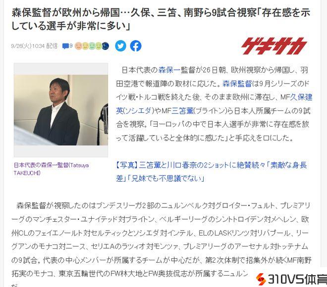 比国足主帅忙!森保一:2周看9场欧洲竞赛调查球员,没空看亚冠