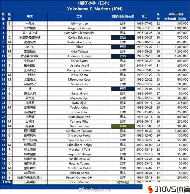 23-24赛季亚冠联赛小组赛日本横滨F水手队报名名单 :宫市亮在列
