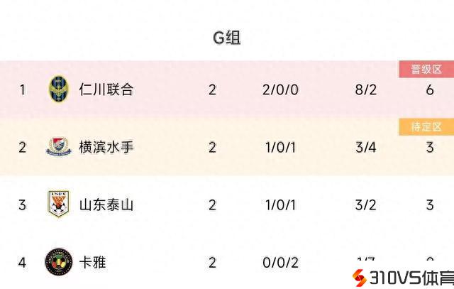 亚冠G组:泰山1胜1负相互战绩优势第三,仁川结合2连胜第一