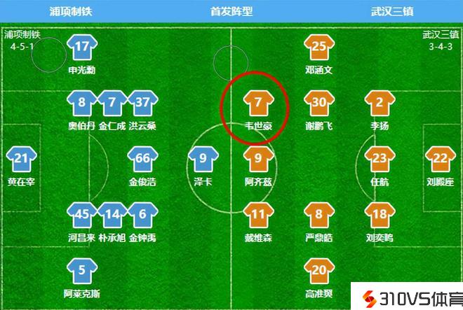 是役,武汉三镇祭出343进攻型首发阵容(上图),意图在客场跟对手死拼3分。而主队浦项制铁则排出4231阵容。不知道是不是看了首轮武汉三镇主场战平浦和红钻,K联赛劲旅浦项制铁这场也不敢大意,先稳防为主。
