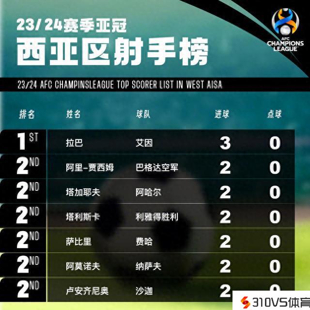 亚冠西亚区射手榜,是不是很出乎你的预料?塔利斯卡第四...