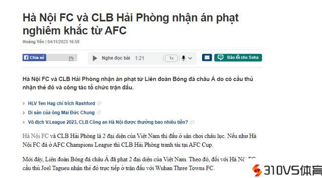 越媒没有报道河内后卫陶文南的处分,所以他应该只停赛一场(2黄变一红)。这位矮小后卫的停赛,对河内队的影响,能够在塔格乌之上。和武汉三镇队的竞赛中,塔格乌收场就飞踹高准翼,然后被罚下。而陶文南屡次阻挠戴维森等人的打破。陶文南被罚后,河内队一切正牌后卫身高均在181cm以下。而暂时踢后卫的勒塔莱等人,其实是前锋。