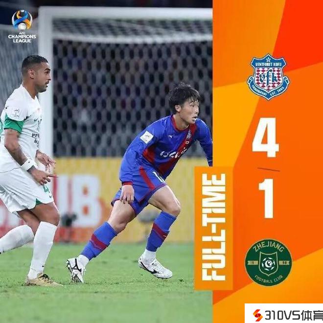 第56分钟,李提香不满主裁判染黄。第60分钟,甲府风林队长关口正大一记爆射破门,浙江1-3!第89分钟,鸟海芳树单刀破门,打进如虎添翼的一球,将比分锁定为4-1!