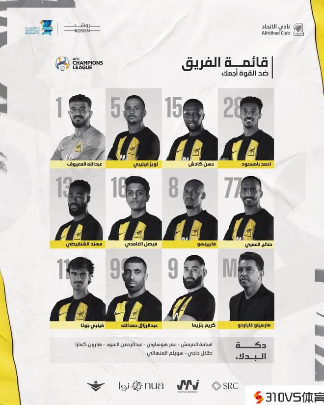 亚冠-吉达结合vs阿尔马雷克首发:本泽马、法比尼奥先发