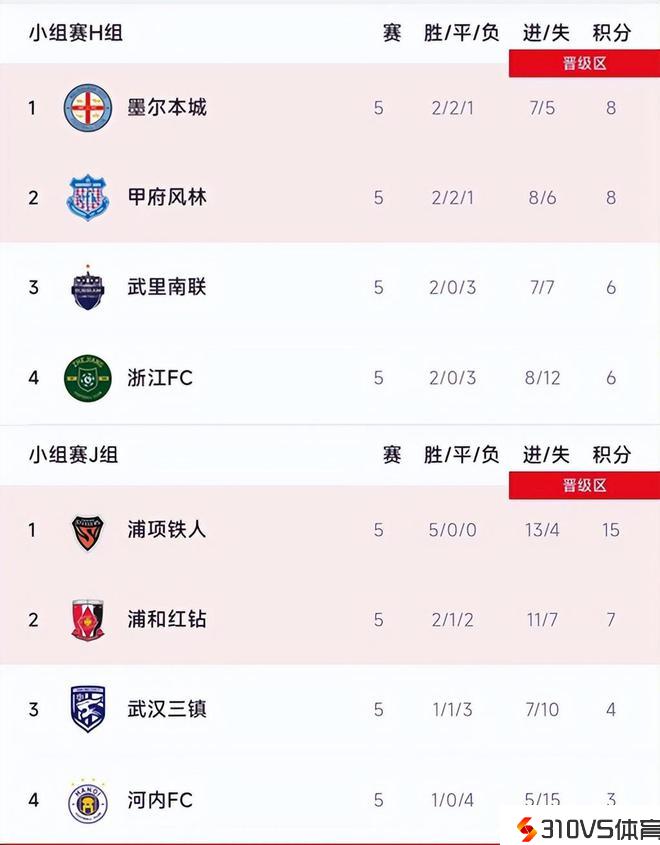 亚冠最新积分榜:三镇第3出局,浦项铁人5连胜,浙江3-2武里南联
