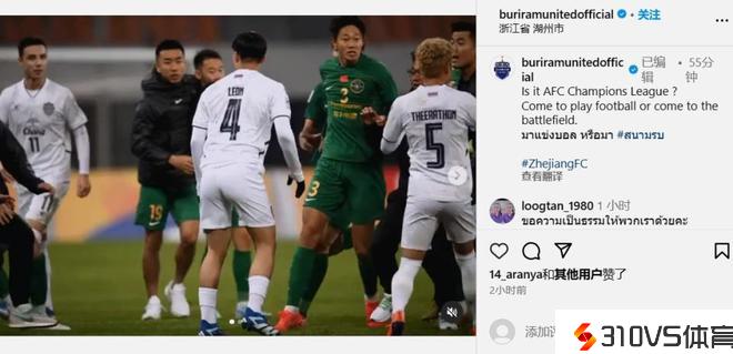 在亚冠第5轮竞赛中,浙江队在主场3-2逆转武里南联队,将出线悬念坚持到最后1轮。或许是不满输球,赛后武里南联队的泰国国度队队长汶马探,用带有歧视性的词汇问候了浙江队球员程进,最终招致了双方球员的剧烈抵触。