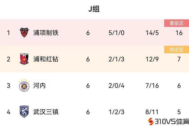 亚冠J组结局:浦项头名,卫冕冠军浦和出局,河内第三,三镇垫底