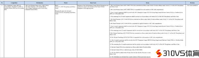 这样的处分牵涉人员之多,禁赛场次之多,算是十分严峻的了,在亚冠的历史上都十分稀有。值得一提的是,之前的爆料和官方的公告有偏向,但是差异不大。之前,有不少泰国媒体都停止了爆料,称两支球队早就收到了亚足联的处分通知,被禁赛的浙江队人员有5个,包括3名球员和2名官员,人员名字略有偏向;被禁赛的武里南联人员有3个,人员名字都分歧。