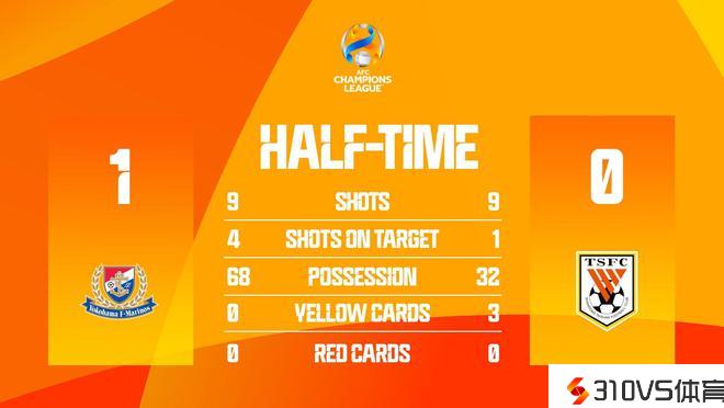 山东客战横滨水手半场数据:犯规11-4,黄牌3-0,射正4-1