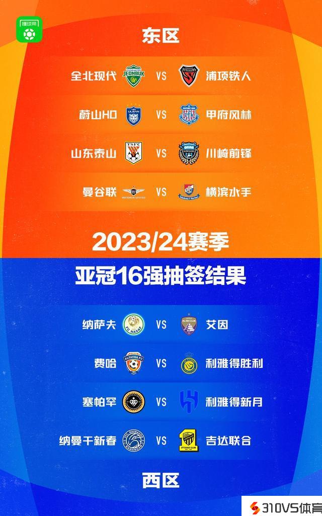 亚冠1/8决赛对阵:山东泰山vs川崎前锋,利雅得成功vs费哈