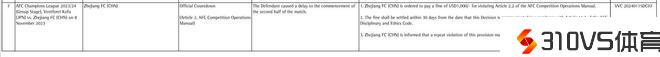 亚冠半场拖延时间招致延迟开球,亚足联官方:对浙江队罚款